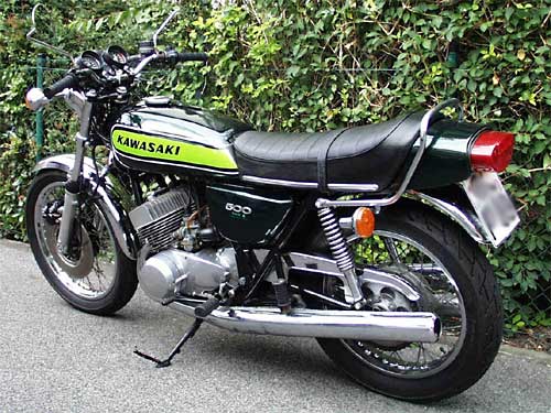 Die Kawasaki 500 H1-E von Jockel, frisch aus Ralf's Triple Klinik entlassen, glänzt das Stück jetzt richtig pervers :-)